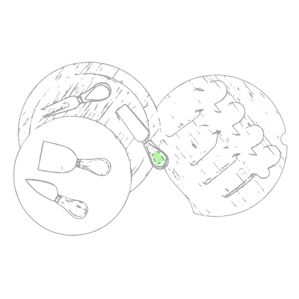 Fully equipped, 4-piece cheese set. Cutting and presentation board made of slate, removable for easy cleaning. Stainless steel utensils and bamboo handle. Presented in an individual, bamboo die-cut case and attractive eco-design individual box.