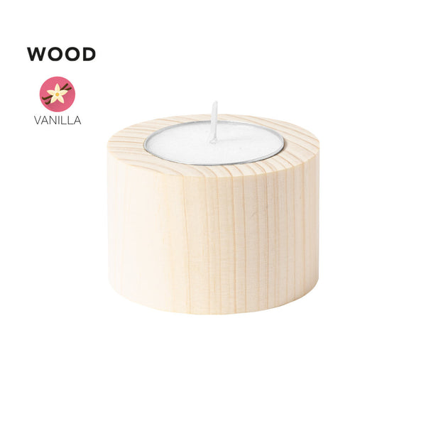 Genuine nature line candle with vanilla scent. Base made in natural wood, and presented in an attractive individual box of eco design and kraft finish.