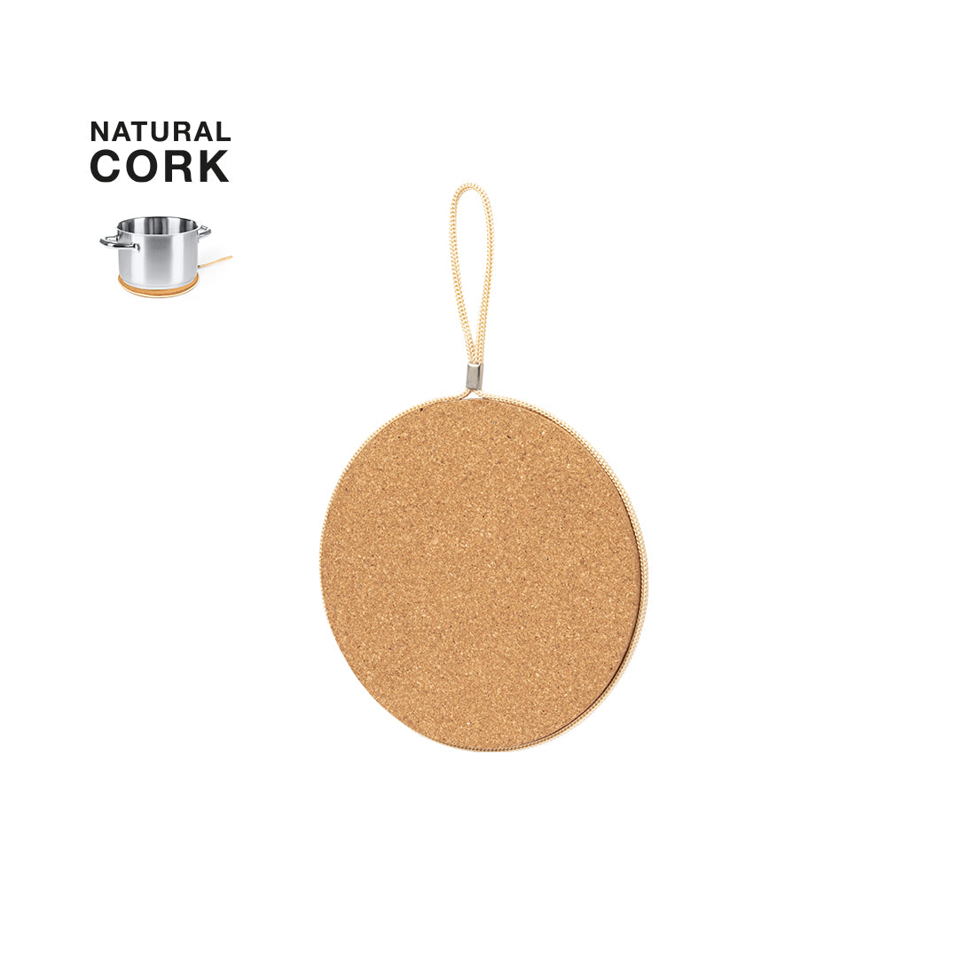 Useful kitchen stand made of natural cork. It is resistant to high temperatures and is specially designed to accommodate hot containers such as pots and pans, while preserving the surface underneath. With cord at the base for hanging.Made with plant-based elements to promote the use of natural raw materials and reduce polluting emissions.