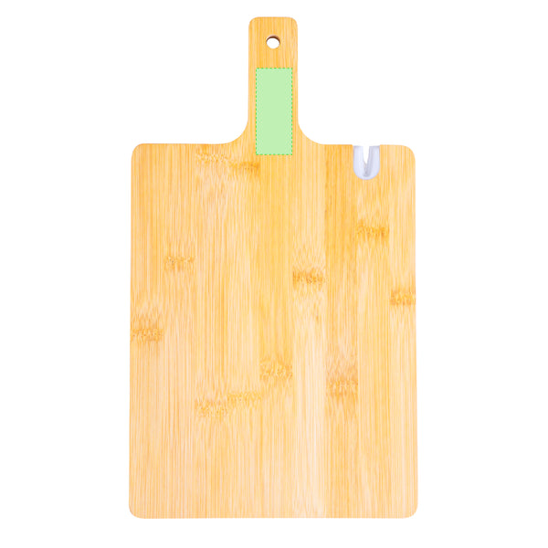 Sharpening board made of bamboo with a smooth and durable finish. With practical knife sharpener on the edge for an always precise cut and handle for easy operation. Individually packed in a kraft design box.Materials such as bamboo encourage the use of natural raw materials, reducing pollutant emissions. In addition, bamboo comes from a highly resistant and versatile plant, with rapid growth and regeneration, making of it an excellent alternative to traditional wood.