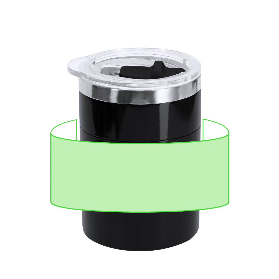 Mixing cup made of resistant Stainless Steel with a capacity of 400ml. Includes lid with sliding nozzle. The interior base includes an electric stirrer powered by 2 AAA batteries (not included). With on/off button on handle.