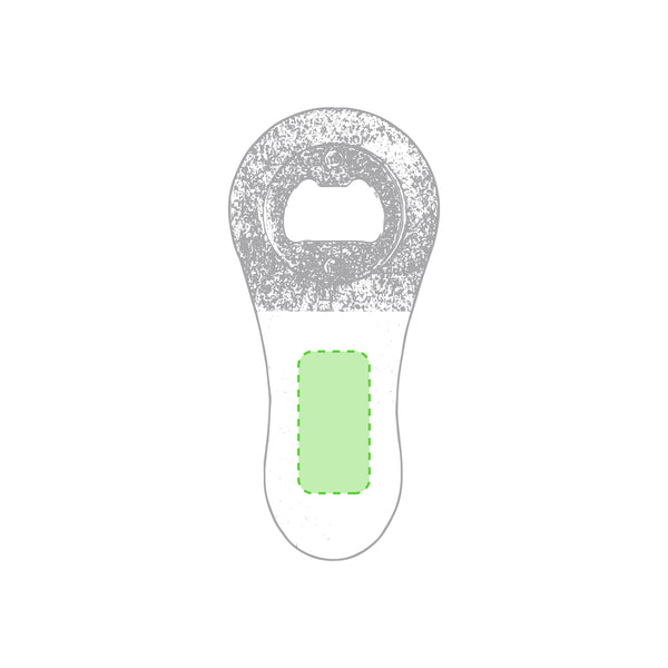 Magnetic opener made in natural wood with an original bicolor finish. With metal opening mechanism, large branding surface and Made In Europe logo.