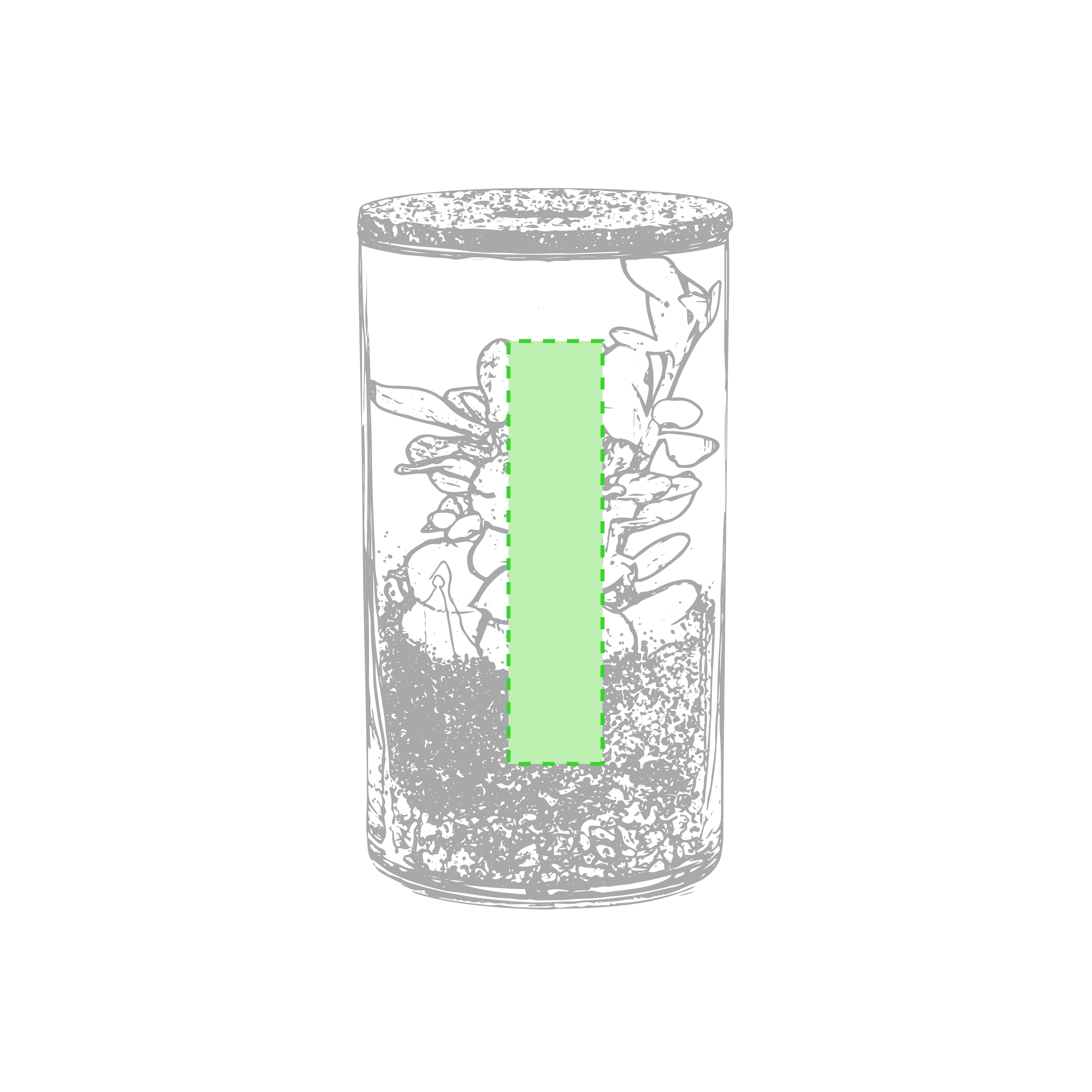 Terrarium with cactus seeds. In a perfect combination of design and ecology, this indoor garden contains everything you need to for vertical cultivation. Made in borosilicate glass, offering exceptional resistance, aesthetics and durability. With natural cork lid for easy branding and substrate. Planting instructions and bamboo tongs included, with Made In Europe logo.