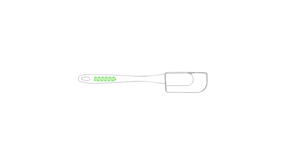 Kitchen palette with silicone end in bright tones and comfortable ergonomic handle with die-cut for hanging.