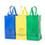 Set of 3 yellow-green-blue recycling bags in resistant laminated pp-woven in 125g/m2 glossy finish. Including 3 bags 23x45x23cm joined together by resistant side velcro straps. With reinforced handles and indication of waste types: plastic and packaging, glass and paper.
