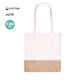 Multipurpose beauty bag in a combination of laminated jute and natural cotton. With zip closure and matching jute handle. Central part made of cotton in different colours.