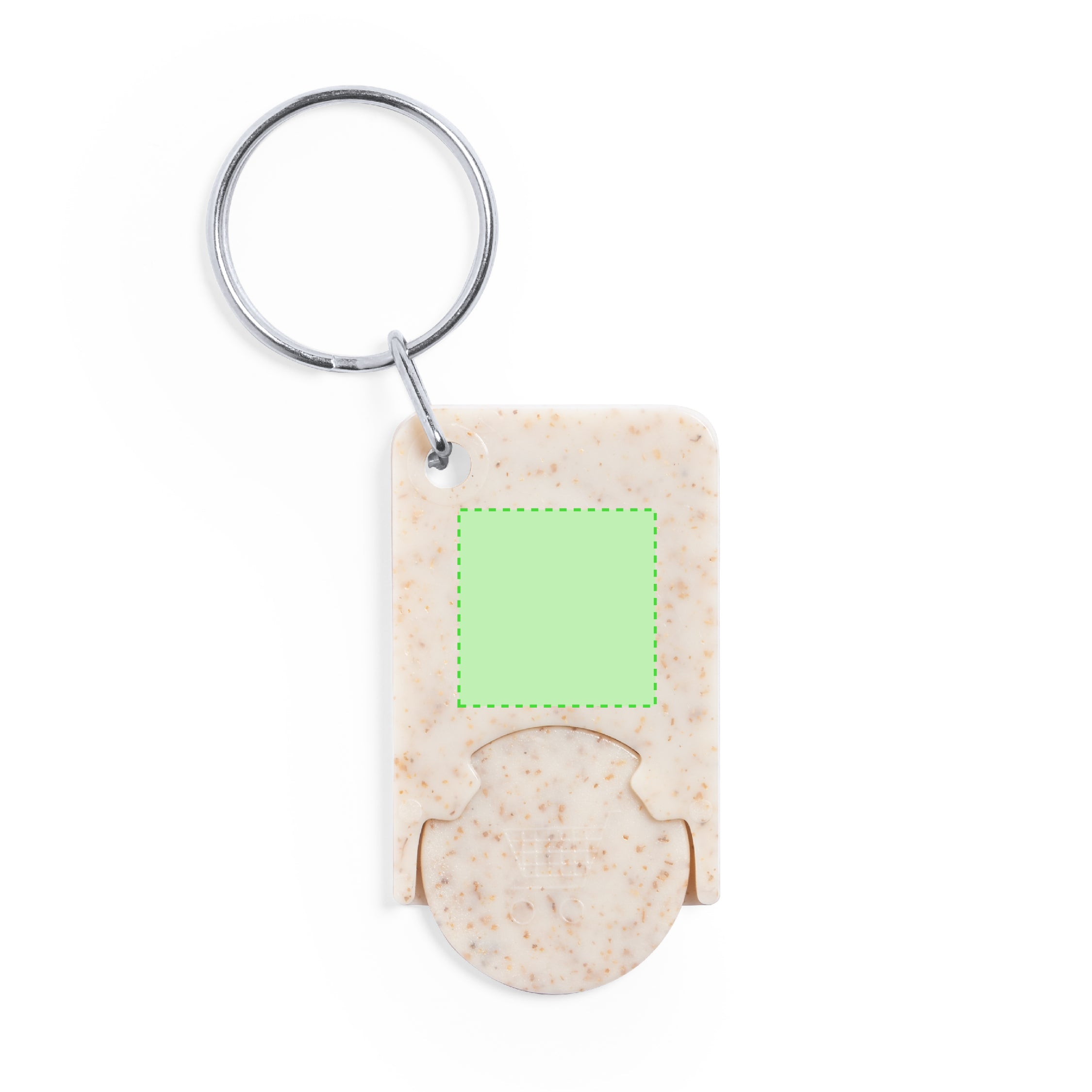 Nature line coin keyring made of wheat straw, with detachable coin and chromed metal ring.Wheat straw encourages the use of natural raw materials, reducing pollutant emissions.