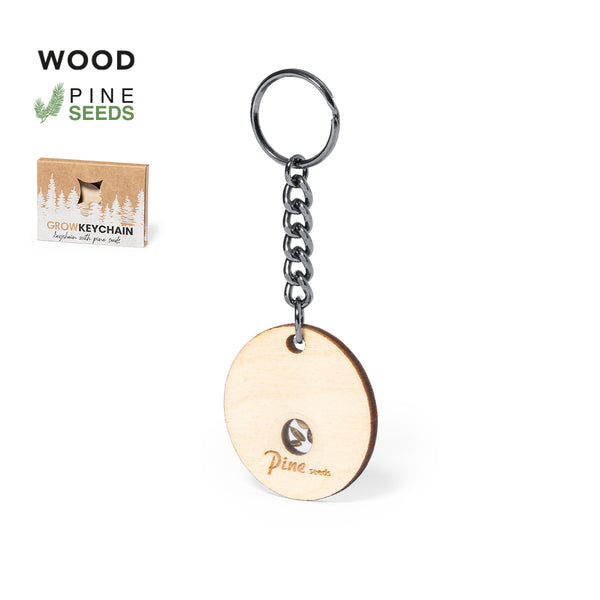 Keyring in soft and elegant beech wood. Including capsule with pine seeds. A respectful and sustainable gift to encourage and promote environmental care. Presented in an individual kraft design box.