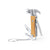 Handy multi-tool key ring made in resistant stainless steel and wood. With 7 functions: hammer, small flat screwdriver, knife, wire stripper, file and bottle opener. Presented in an individual kraft design box.
