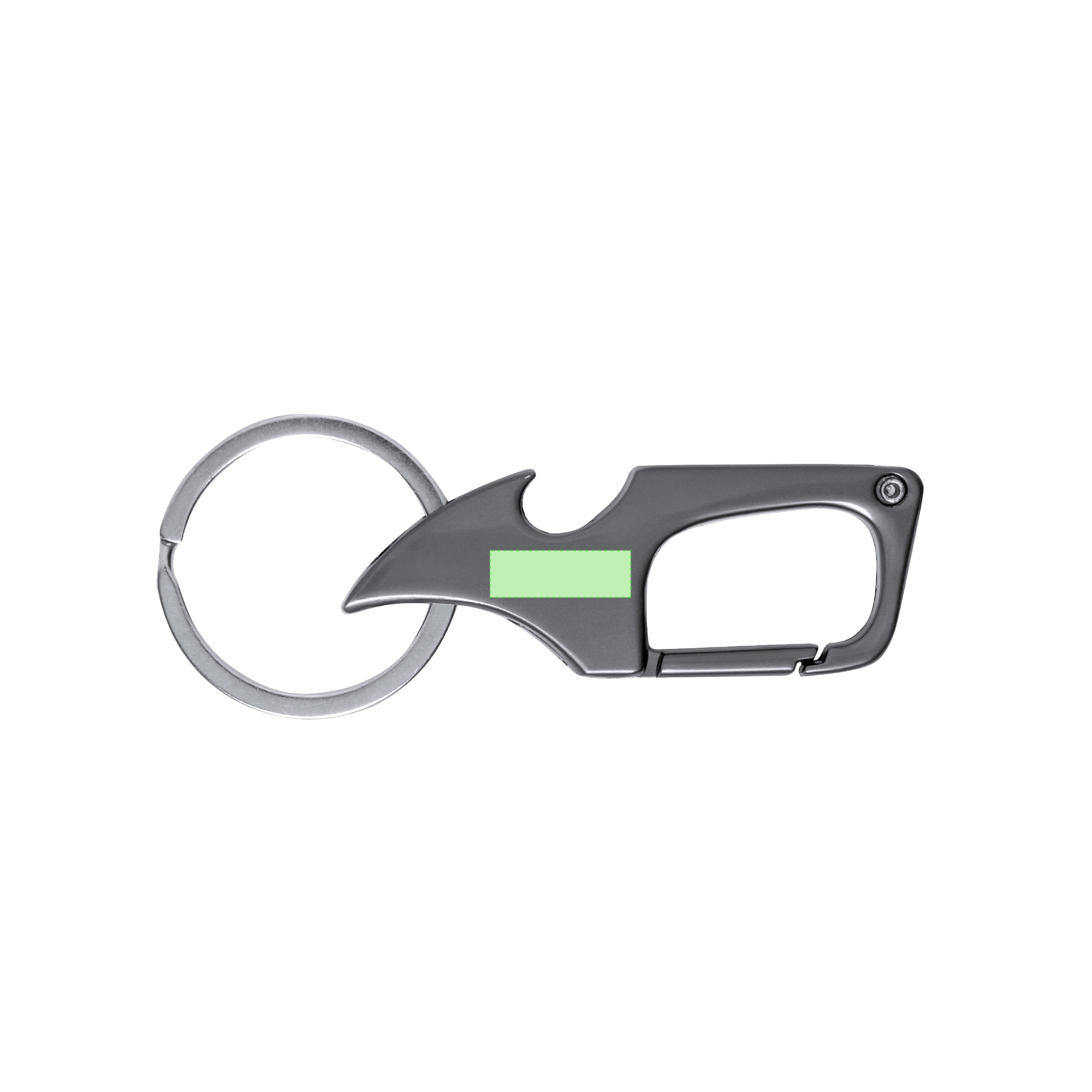 Useful metal opener with key ring and carabiner for quick attachment. With bottle opener on one end and with a small stainless steel knife on the opposite end, ideal for opening letters, packages... In an elegant metallic black colour and presented in a Recycled paper bag.