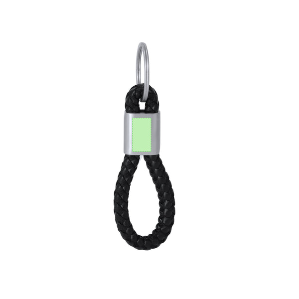 Elegant key ring with braided PU leather cord. Including a matt alloy central piece, specially designed for laser branding.