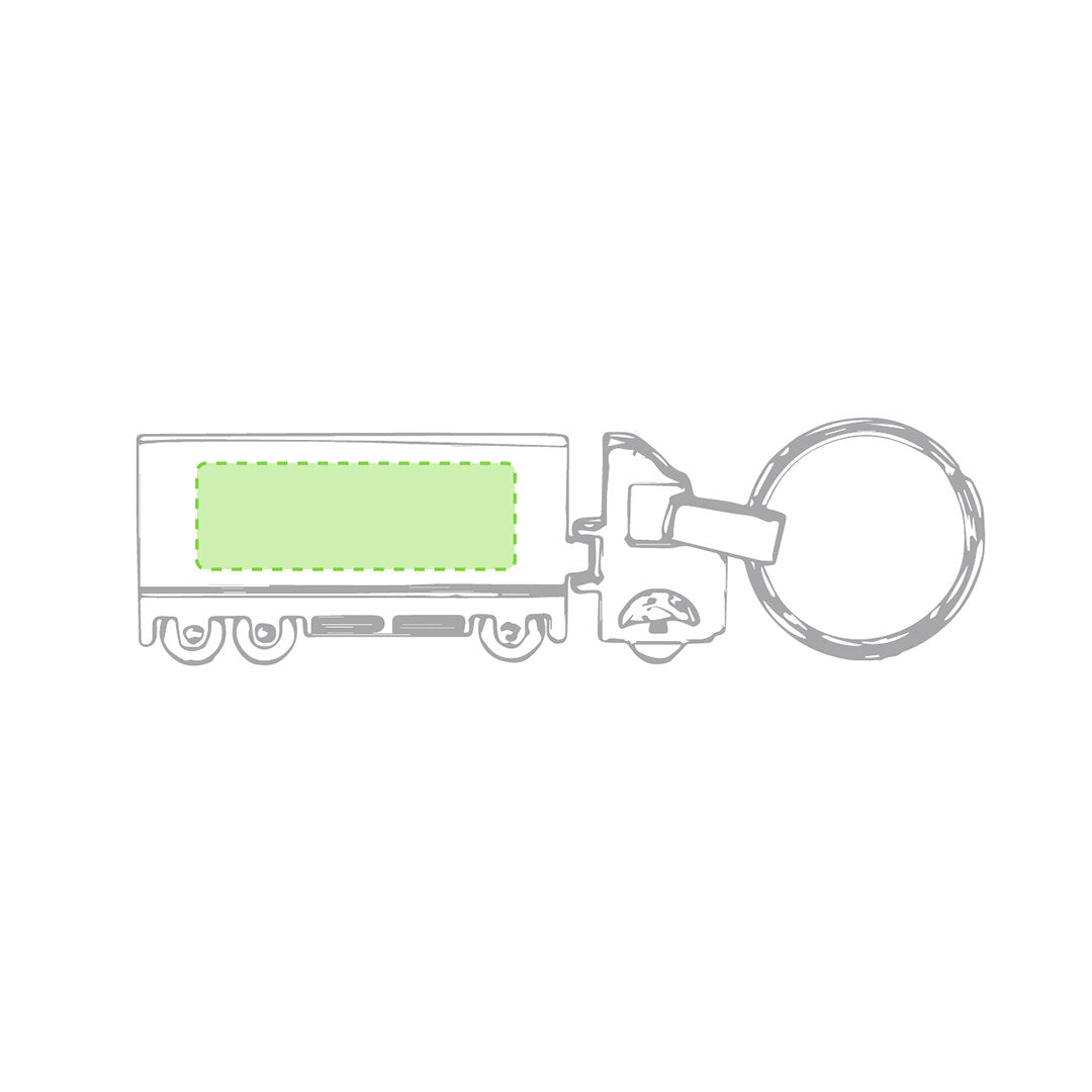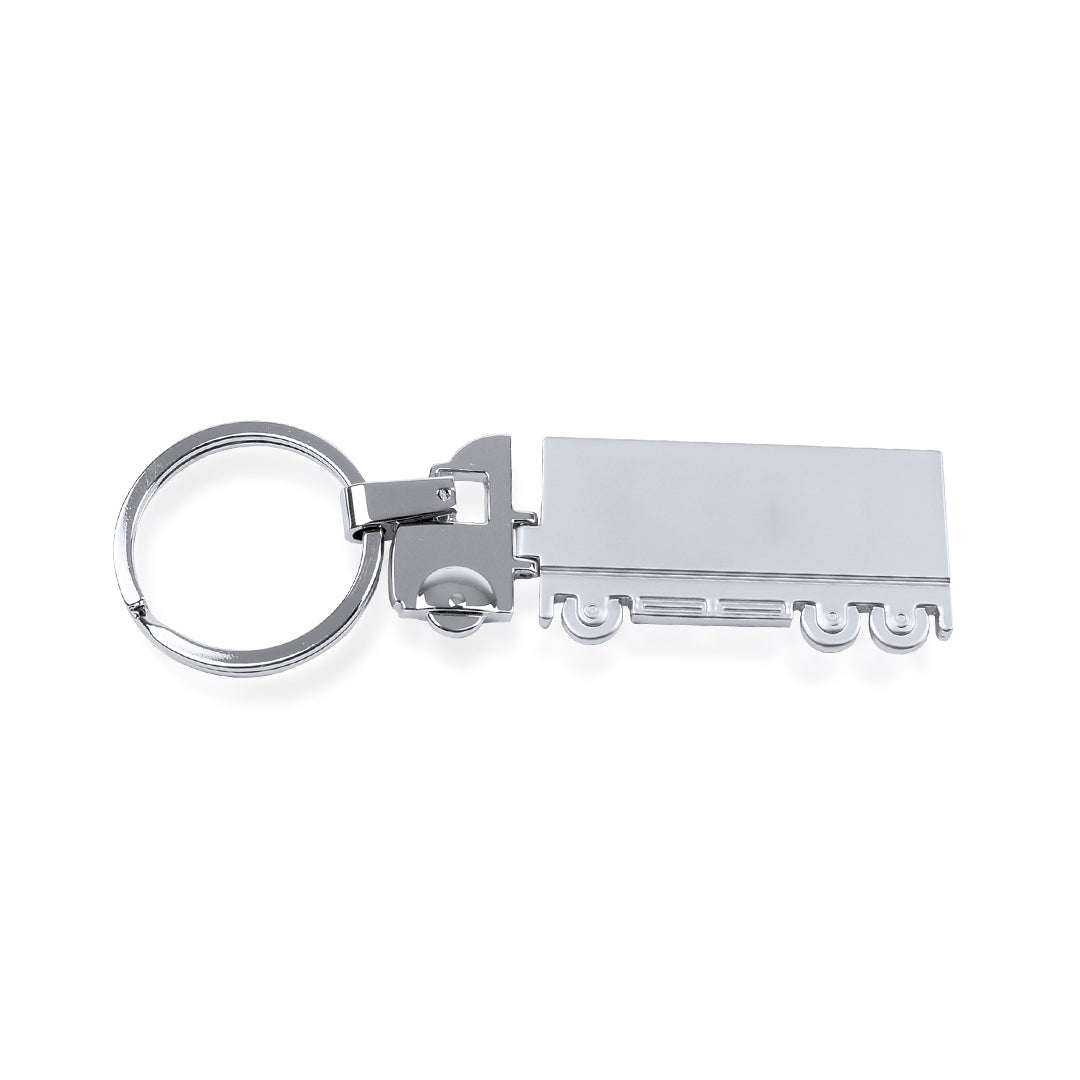 Metal keychain in fun truck design, especially designed for laser printing. With cab in glossy finish and trailer in matte finish.