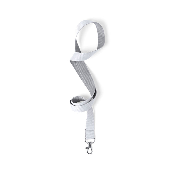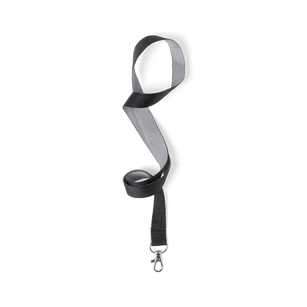 Original lanyard in resistant polyester in bicolor design and bright tones with metallic carabiner closure.