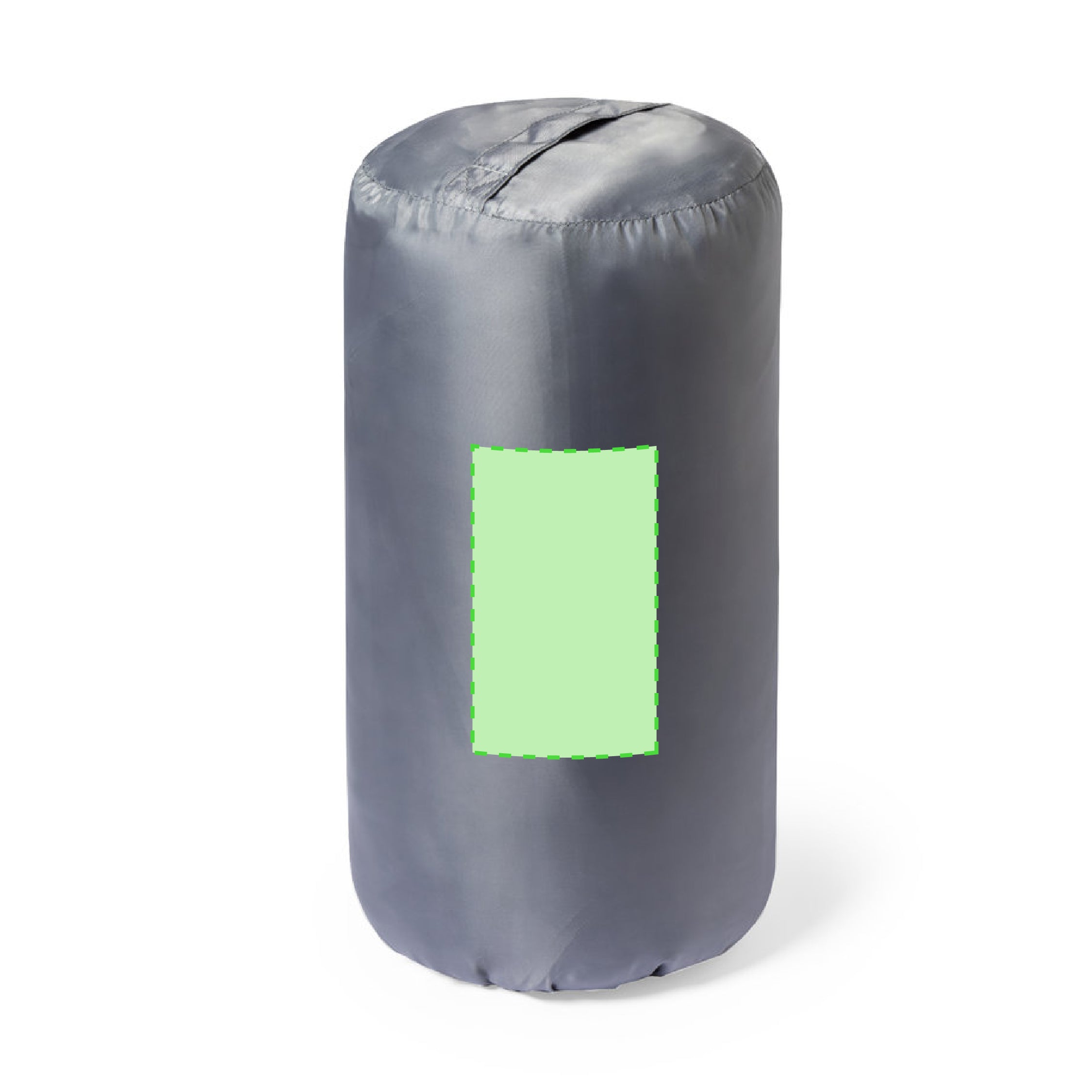 Sleeping bag made of durable RPET 190T polyester with a pleasant and warm feel, in grey colour. With thick inner padding and full opening zip. Matching sleeve in RPET, with drawstring fastening, adjuster and outside label with the RPET distinctive. RPET material is made from recycled plastic, to encourage the reuse of plastic waste and help the sustainability of the planet.