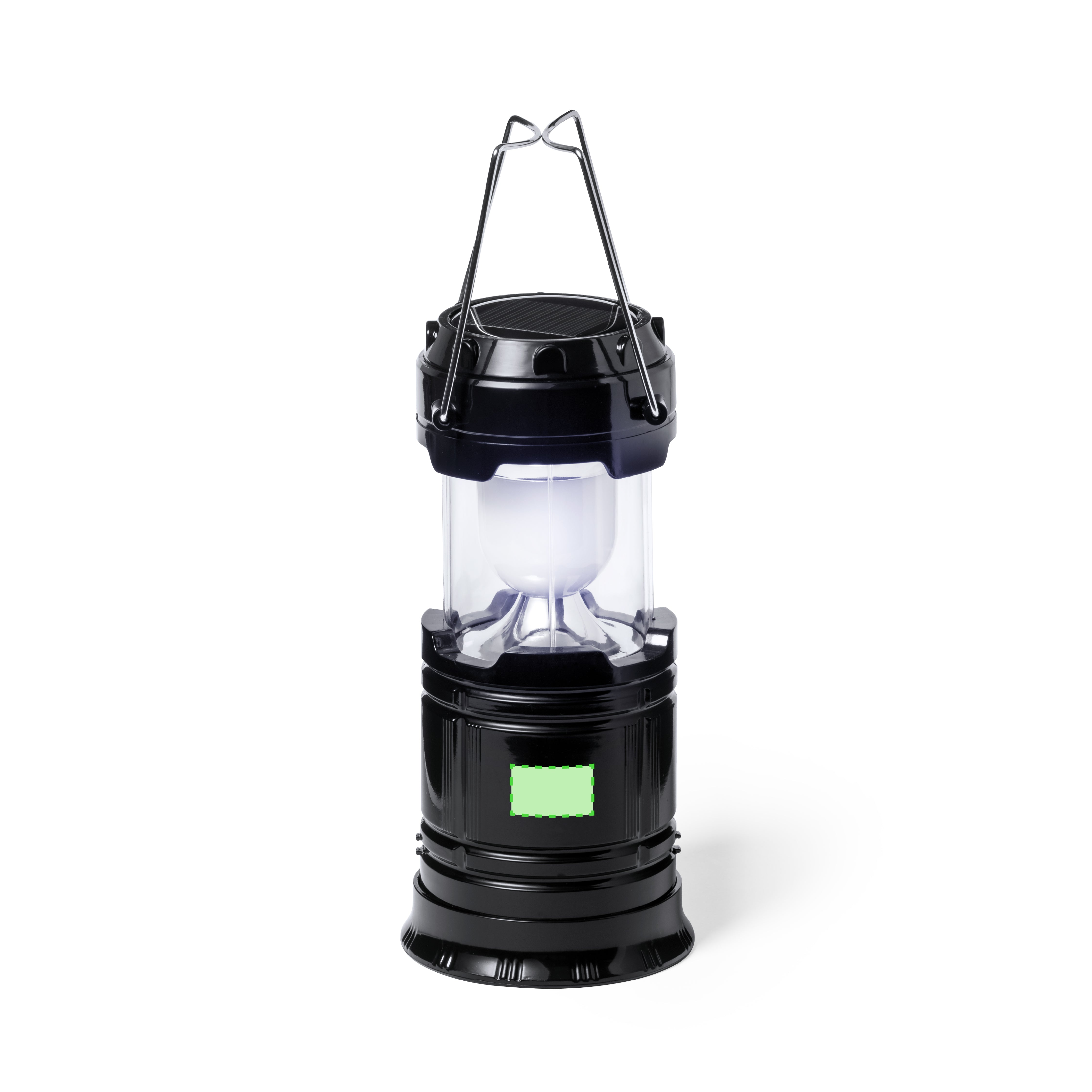 Solar-powered multi-functional lamp with integrated 1,200 mAh auxiliary battery and flashlight. Made in durable ABS material, with metal folding handles. Functions:Lamp with 6 white light LEDs and 60 lumens.Torch with 1 white light LED and 20 lumens1,200 mAh lithium auxiliary battery with USB output and Micro USB input, Micro USB charging cable included (5V DC 1A).Presented in an individual kraft design box, with instruction manual in English and Spanish. The capacities shown in all our external auxiliary batteries are real, all of them incorporating non-recycled, grade A batteries, with a service life of at least 500 charging cycles, and complying with CE regulations. In addition, they are manufactured according RoHS standards, and in compliance with the following safety requirements: Power bank overcharge protection system. Complete discharge protection system, which increases the durability of the power bank. Blocking system to prevent short circuits. Constant charging transfer system, in accordance with the capacity of the target device.