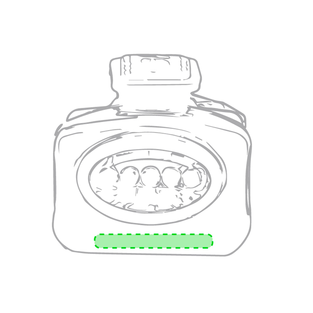 5 LED flashlight with three lighting modes. Comfortable elastic band with adjustable and detachable elastic band and body in resistant material in bright tones. Battery power supply: 3xAAA not included. Presented in an individual silver-plated box with bubble protection bag.