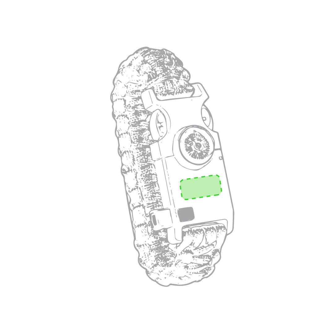 Multifunction armband for adventure lovers. In resistant nylon material, with 5 functions: armband, compass, whistle, flint scrapper and opener. Available in a wide range of colors, with safety buckle closure.