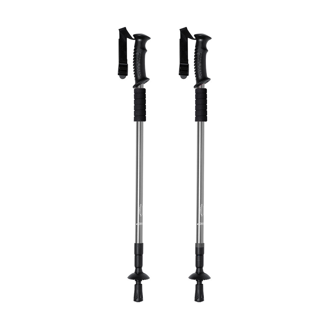 Set of folding poles with aluminum body, anti-shock mechanism and soft foam hand rests. Comfortable ergonomic, adjustable security belt and snow accessory. Reinforced ground contact surface. Presented in an individual bag with shoulder strap. Poles available in 3 colors.