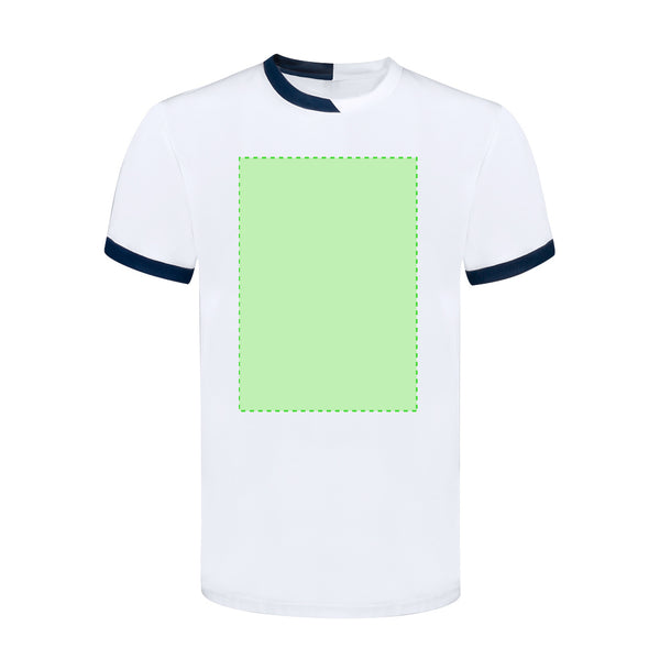 Adult technical T-shirt in 100% polyester 135g/m2. Made of comfortable and soft breathable fabric with round neck. Original two-tone design, with details on the lower part of the sleeves and two-tone contrasting collar. Available in sizes XS, S, M, L, XL, XXL.