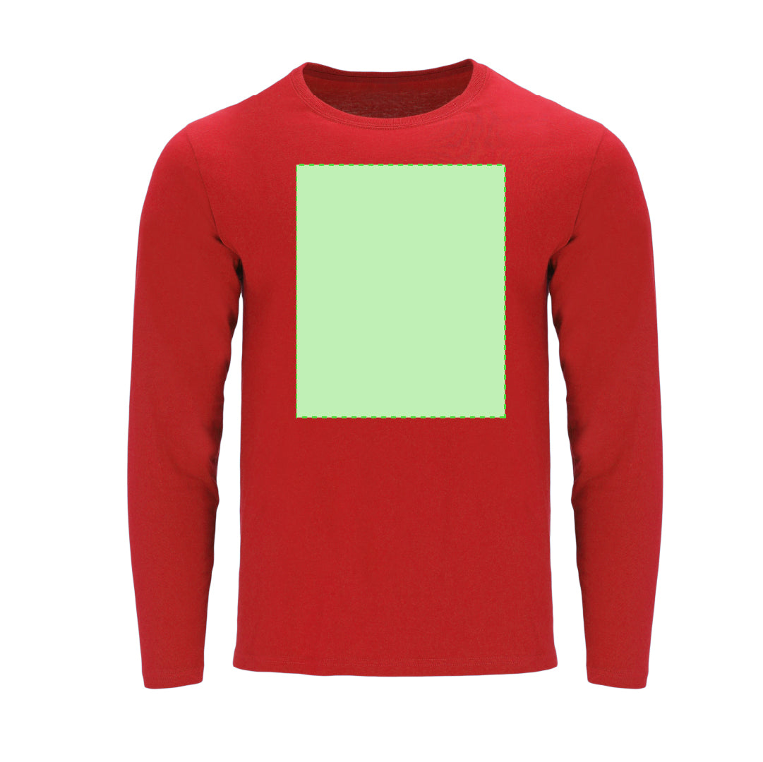 Adult size, long sleeve T-shirt in colour, soft and nice to the touch in 100% cotton, 160 g/m2 plain jersey (grey color in 85% cotton + 15% viscose). Made in tubular fabric, with 1x1 ribbed round neck and matching, reinforced seam cover.
