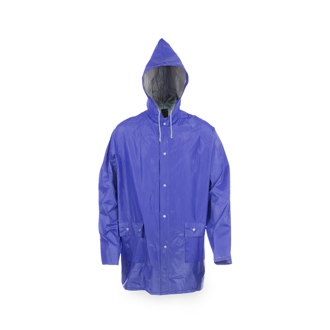 Raincoat in resistant PVC with heat-sealed finishing in a wide range of tones. With hood and strings, button closures and pockets. Available in sizes M-L, XL-XXL.