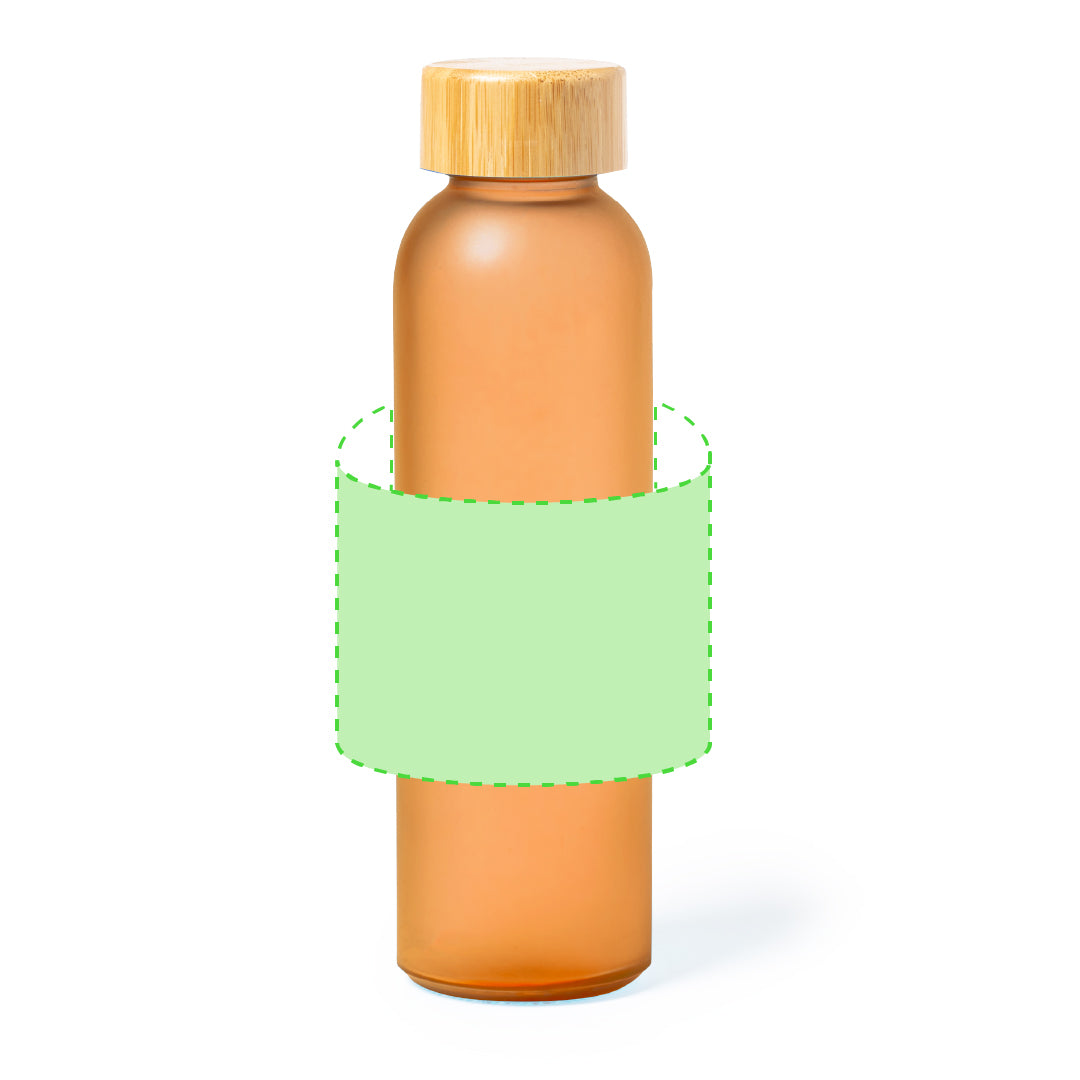 Sublimation glass bottle with 500 ml capacity. With bamboo screw cap and BPA free. Specially designed for sublimation printing. Available in a wide range of matt colours. Presented in an individual kraft design box.Materials such as bamboo promote the use of natural raw materials, thus reducing pollutant emissions. It comes from a highly resistant and versatile plant, with rapid growth and regeneration, making it an excellent alternative to the use of traditional wood.