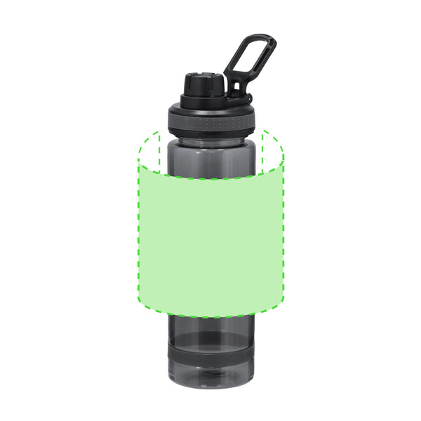 Resistant RPET Bottle with 700ml Capacity. In a translucent matte finish, this bottle includes a black screw-on lid for optimal sealing, a convenient screw cap for drinking, and a sturdy carrying handle. BPA-free.RPET material is made from recycled plastic, thus promoting the reuse of plastic waste and helping the sustainability of the planet.