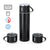 Set of thermos bottle and 3 cups made of stainless steel. Double-walled thermos with 420 ml capacity, ensuring a better and longer-lasting temperature preservation, with safety dispenser. 140ml screw-adjustable cups in an elegant black design, great for enjoying a hot or cold drink, anytime, anywhere. Presented in an elegant black case.