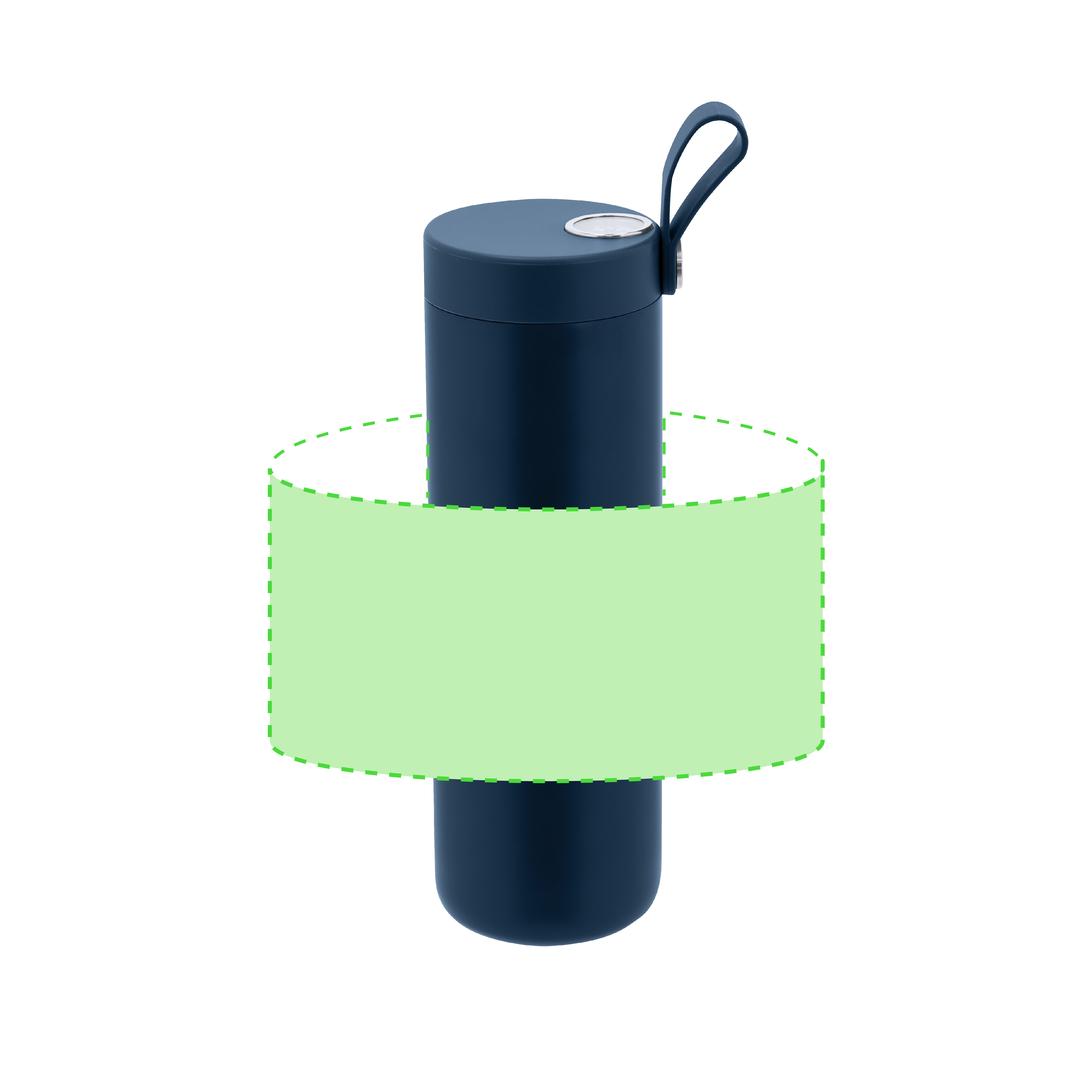 Thermal bottle made of stainless steel and double-walled with a capacity of 500 ml, with an analog temperature gauge, ranging from 0º to 100º. With a safety cap, integrated silicone handle, and matching body. BPA-free.
