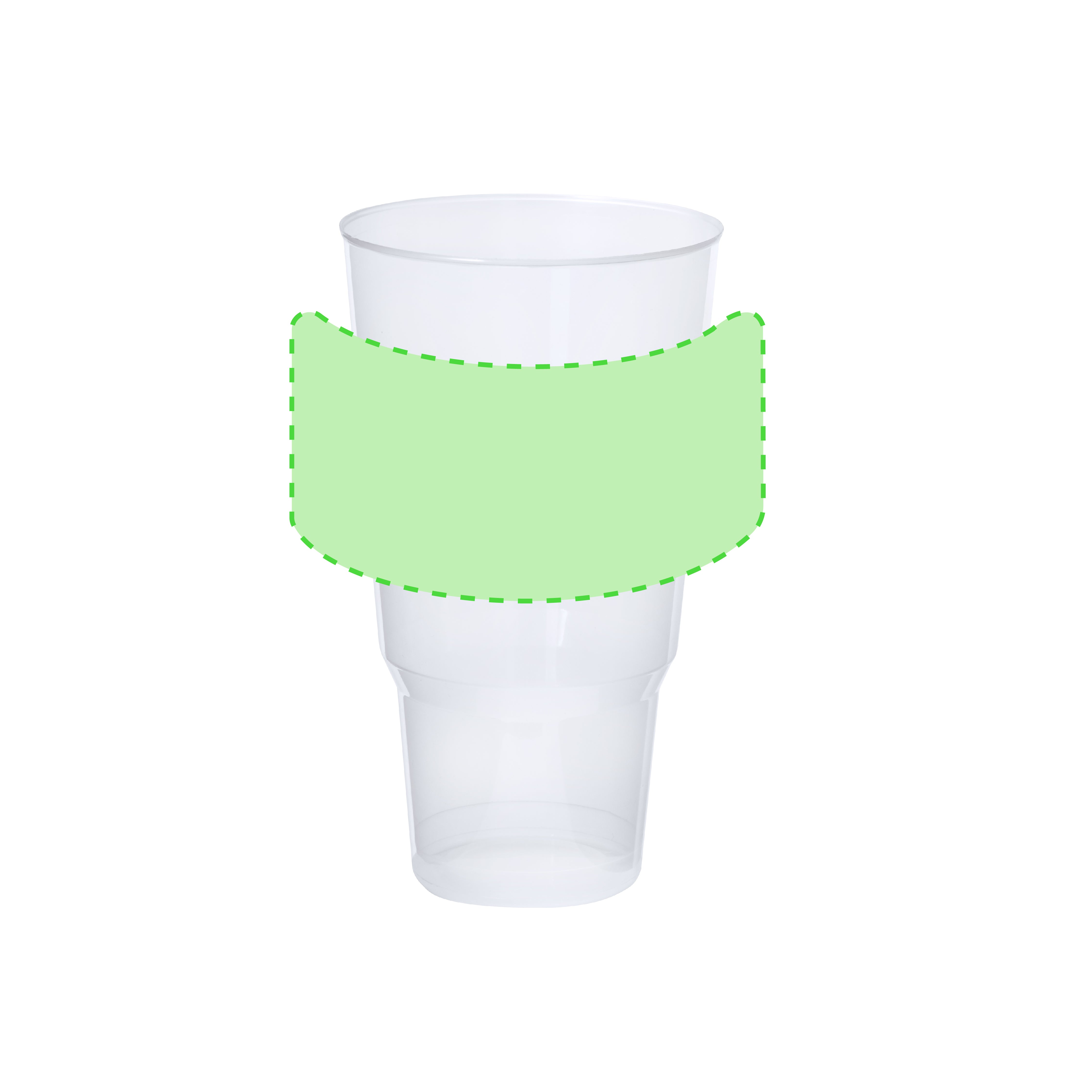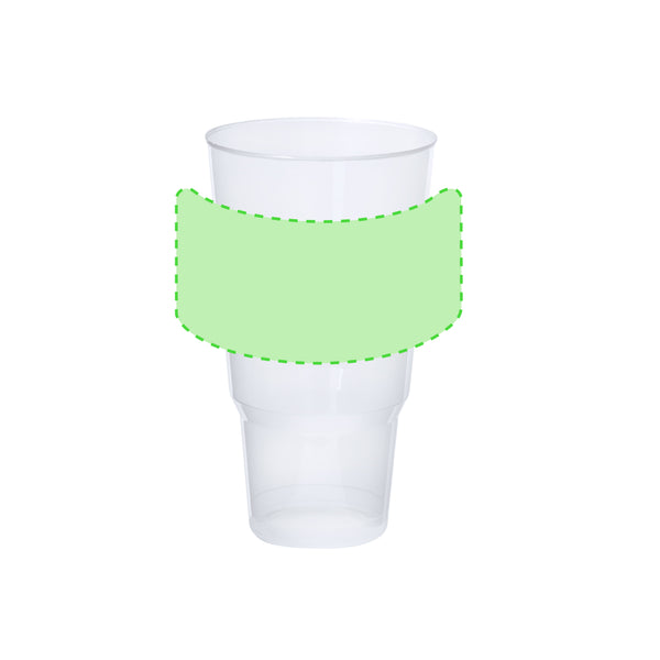 1.2l capacity cup in durable and flexible PP material. Reusable and in a translucent finish, with a special shape at the base for coasters.