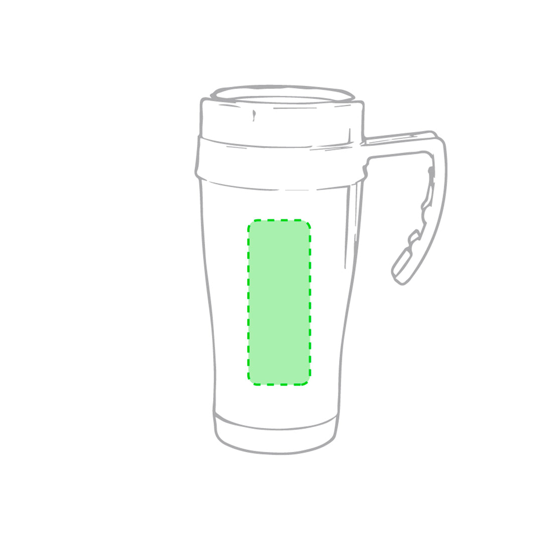 Tabletop mug made of stainless steel with a 450ml capacity and a glossy finish body with matching accessories in bright colors. With dispenser and easy-open lid. It is ideal for your desk, table, or any surface where you can enjoy your favorite drink.