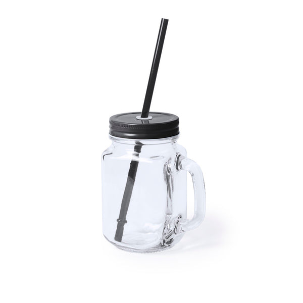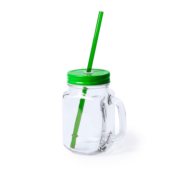 500ml, multi purpose glass jar with cover and straw in bright tones. With metal cover and presented in an attractive design box.Instruction manual available in Spanish and English.