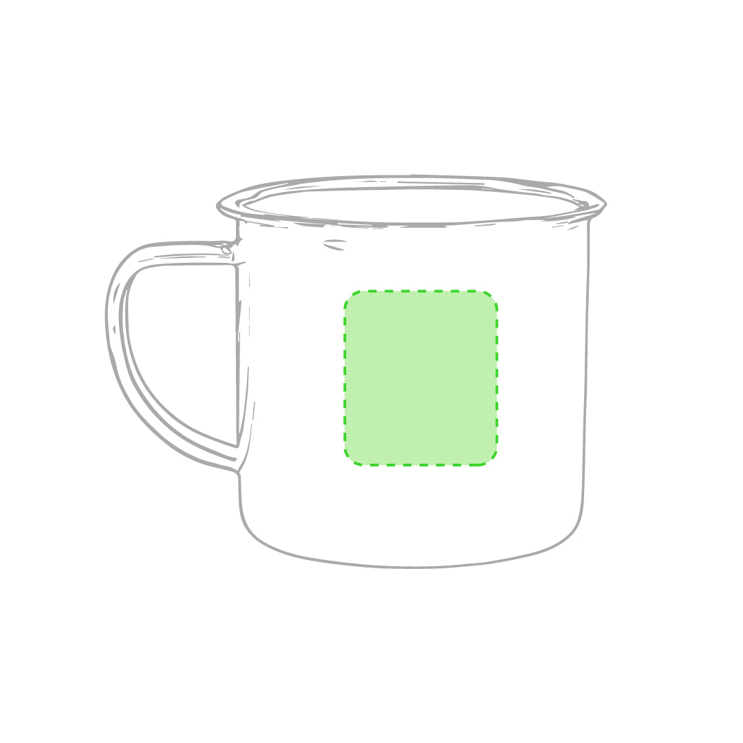 380ml metal mug with vintage design finished with imperfections, for greater retro feeling. In combination of outside in a wide range of vintage tones and inside in white color with black piping. Presented in an individual box.
