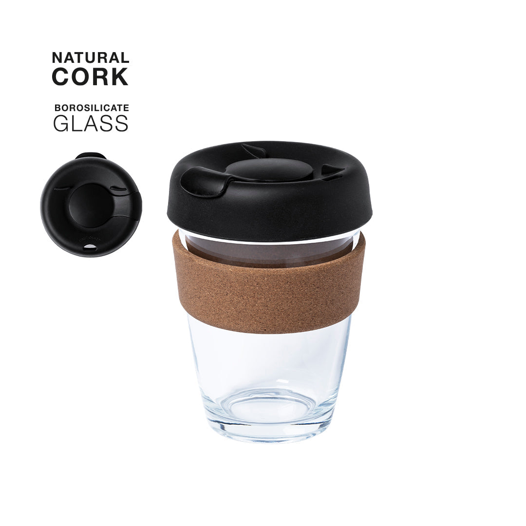 350 ml capacity nature line cup, with outer band made of natural cork, BPA free. Made of borosilicate glass, which offers exceptional strength and durability, extending its lifespan and being reusable countless times. Safety lid with dispenser and easy opening. Presented in an attractive eco-design box.