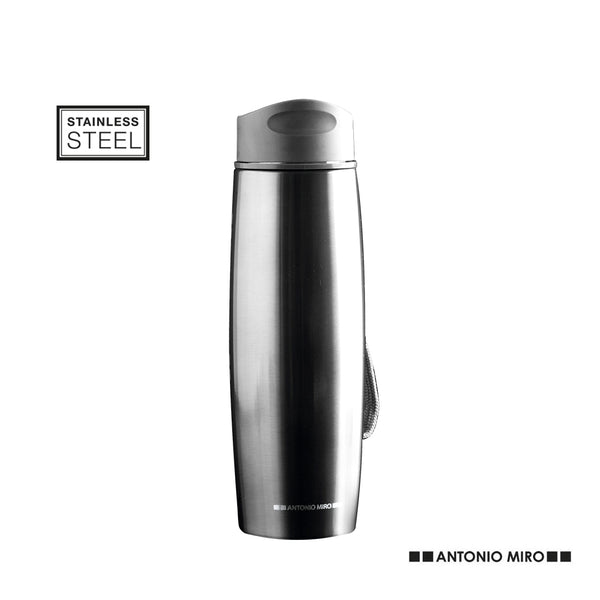 Thermos flask by Antonio Miró. In stainless steel, 500ml capacity with metallic finishing body in combination with accessories in sober colors. With safety dosing coverand Presented in an individual box with the brand logo. Instruction manual available in Spanish and English.