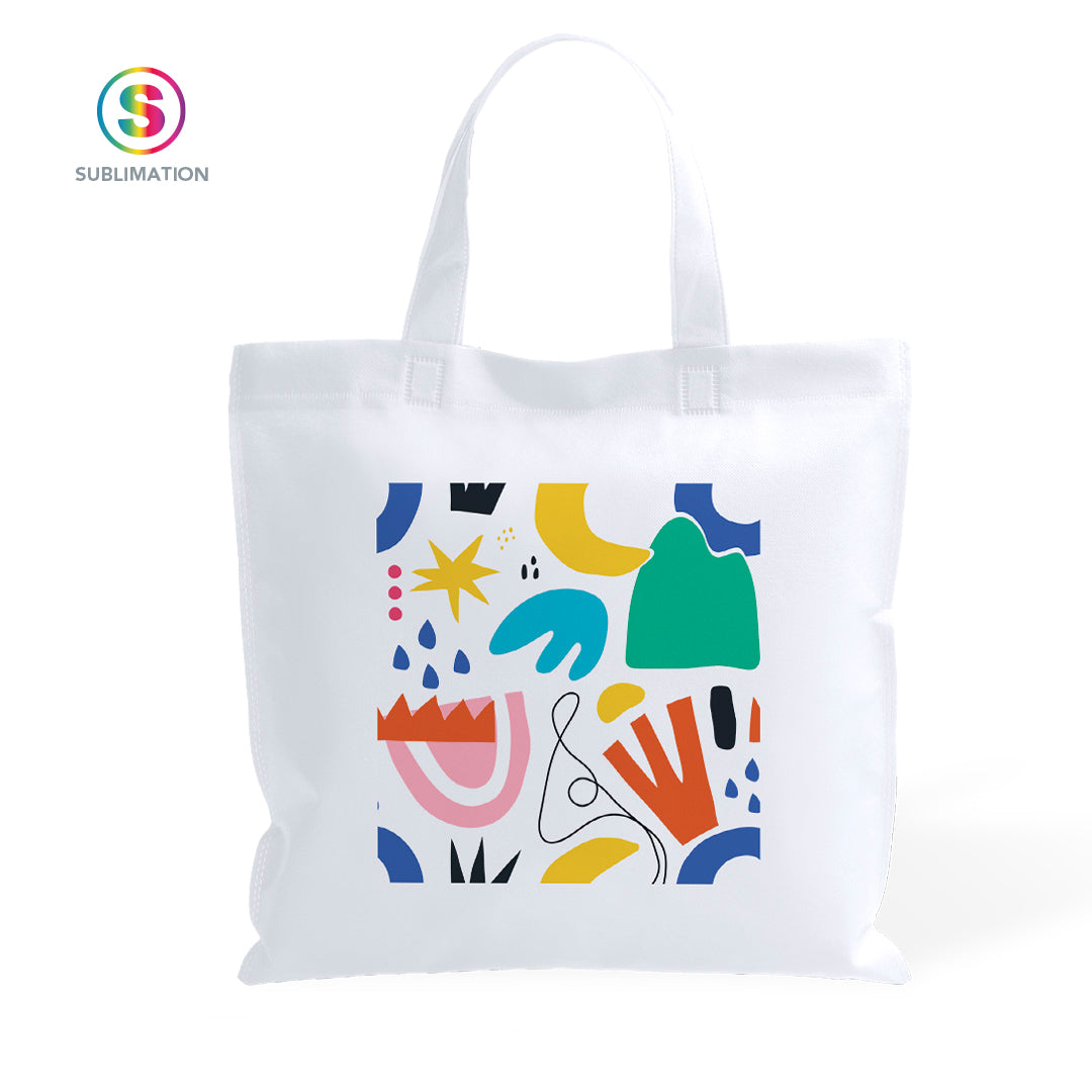 70g/m2 non-woven bag in white color, specially designed for sublimation printing. Heat-sealed finish, with short reinforced handles (36 x 3 cm). Resistance up to 6 kg in weight.