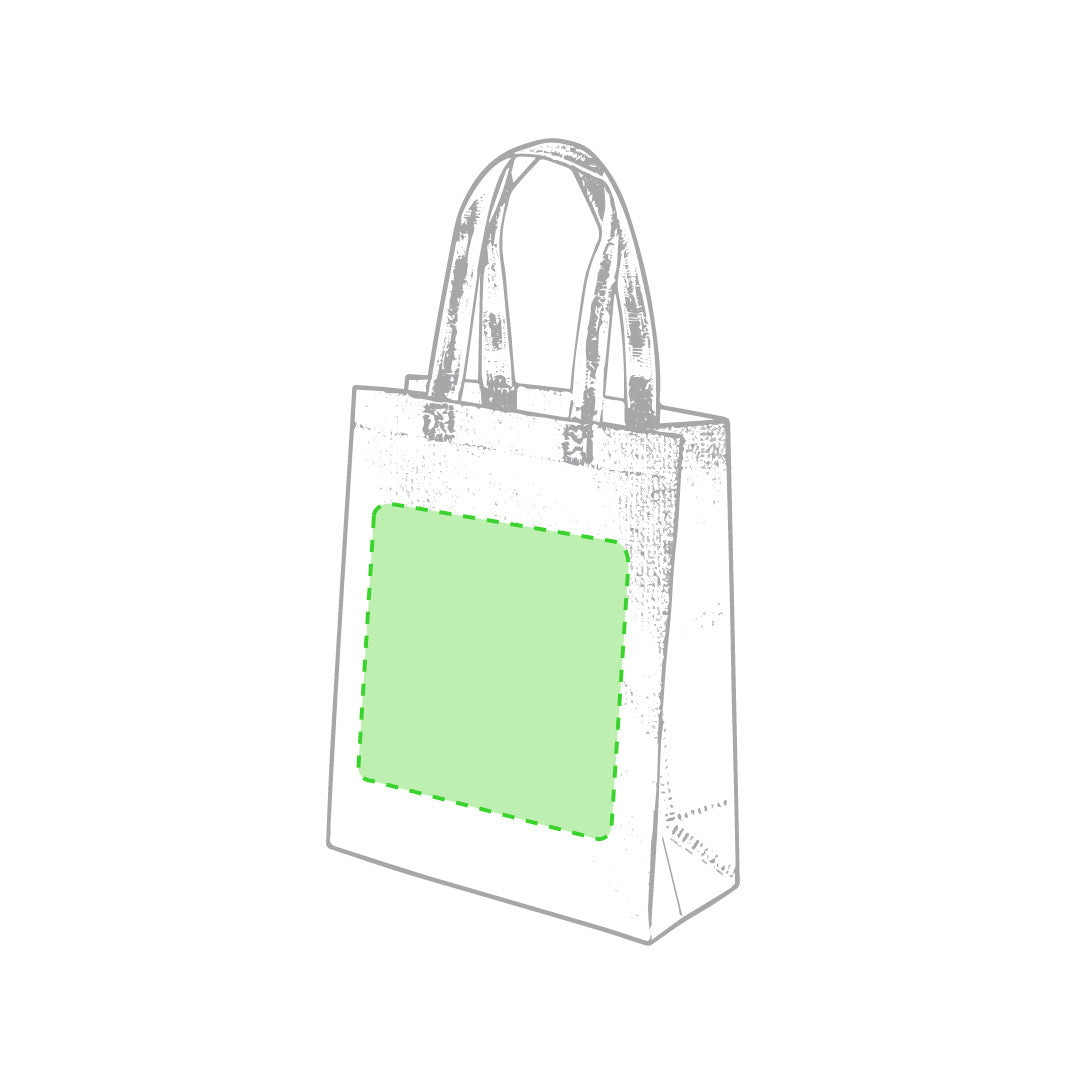 Reusable bag nature inspired in heavy 90g/m2 non-woven material. Size 25x31+11 cm, with stitched finishing and reinforced, short handles 27 cm length. Resistance up to 7 kg weight.
