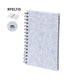 A5 notepad with hard cover in strong recycled cardboard. With 100 white sheets and elastic band for closing. Presented in an individual recycled bag.
