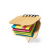 Notepad with rings and soft covers made of recycled cardboard. Includes 70 white sheets with single-stripe layout, 25 sticky notes of 4,5x5cm and 125 mini sticky notes of 1,5x5cm in assorted colours. Presented in an individual paper bag.Recycled cardboard comes from the reuse of manufacturing surpluses and paper recycling at the end of its lifespan, making it an ecological and sustainable canvas.