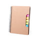 Ecologic, natural cork notepad with hard covers. Including 80 plain sheets in kraft color finishing, elastic band and fabric bookmark in sober black color.