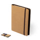 Nature line notepad with natural cork hard covers and a sober design. Includes 100 blank white sheets, with bookmarks and pen holder in matching color.