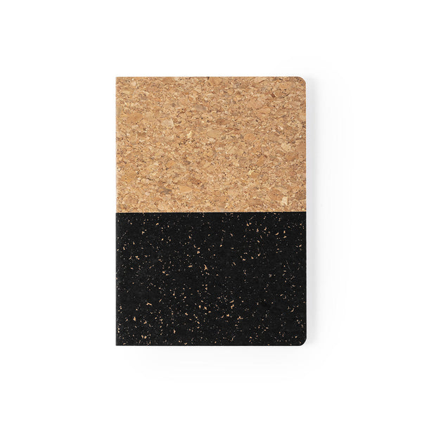 Nature line, A5 notepad in natural cork and original two-colour finish. Inside with 80 sheets in striped layout. Available in black and white colour combinations.