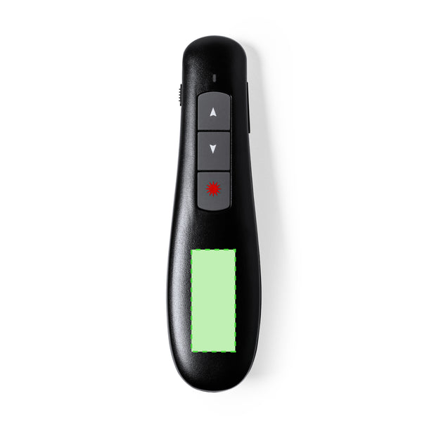 Wireless laser pointer for presentations. Ergonomically designed, including plug play accessory to connect it to the USB port of the computer, without additional software installation for its correct operation. Compatible with multiple operating systems (Windows, OS X, Linux and Android). With forward/pause/backward/volume buttons and battery operated (2xAAA included). Presented in an elegant and resistant black cardboard case, with foam die-cut inside. Instruction manual in English and Spanish.