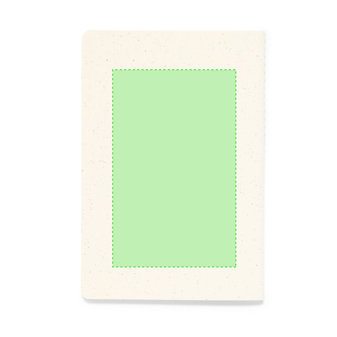 Notebook with covers made of recycled cardboard and matching stitched finish on the spine. Inside with 60 white pages. Presented in an individual recycled bag.