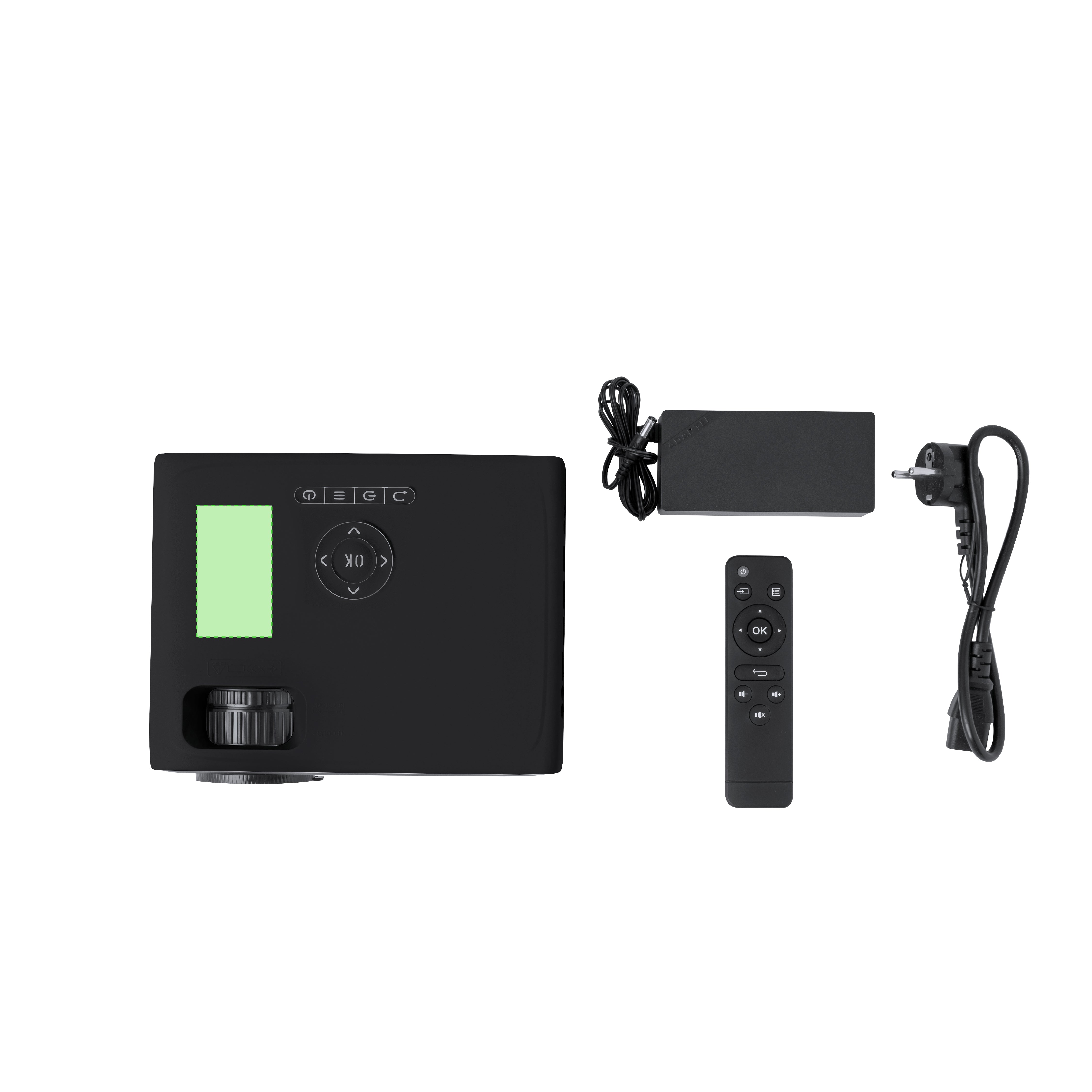 Projector with Bluetooth and WiFi connectivity that provides a fantastic audiovisual experience. Manufactured in resistant black ABS, with focus and angle adjustment for optimal viewing. It has a power output of 7,000 lumens, with 720p resolution, and incorporates a powerful 5W speaker. Multitude of connections: 3 HDMI outputs (1 male connector + 2 female connectors), USB connection, 3.5 mm jack audio output, and 3.5 mm jack audio input. With a slot for Micro SD memory cards and remote control for a convenient and easy operation of the device. Including AC 220V-240V power supply cable and comes presented in a kraft design box.