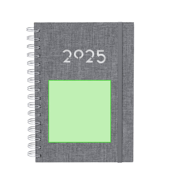 A5 size ring diary in soft and resistant RPET, with hard covers and elastic band closure. It includes a kraft presentation box and an RPET logo.Daily page, with an area for notes and fabric bookmark. In 2 languages: English and Spanish.RPET material is made from recycled plastic, thus promoting the reuse of plastic waste and helping the sustainability of the planet.