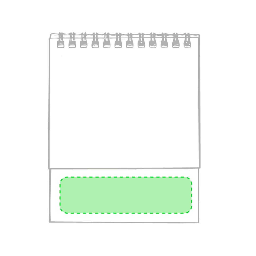 Ring table calendar, triangular shaped in cardboard. Design month in progress/previous month/next month and calendar of saints´ days. Large branding surface at both sides.