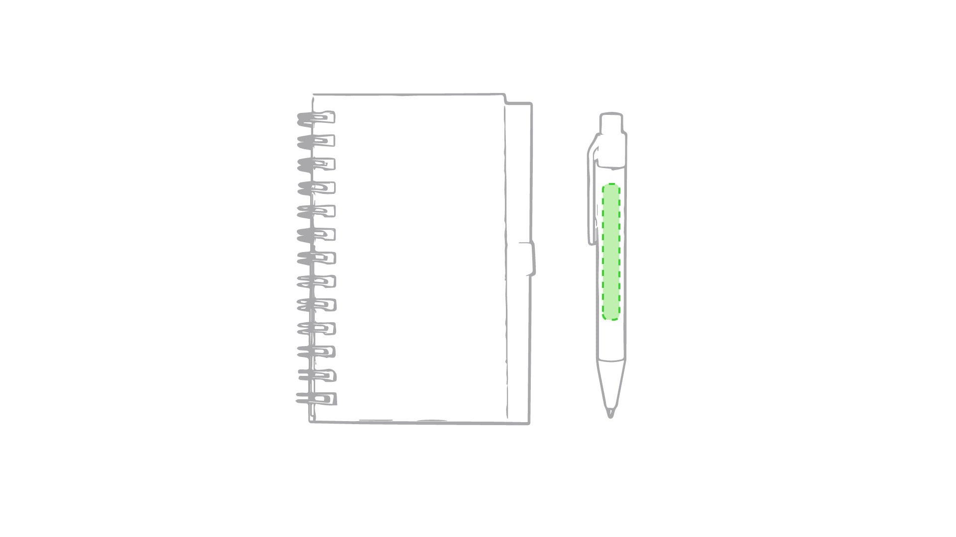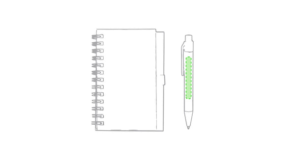 Ring notebook with soft-touch covers in resistant recycled cardboard and ball pen in matching color recycled cardboard. Boldly colorful, 50 sheets with striped layout and with ball pen holder on back cover.