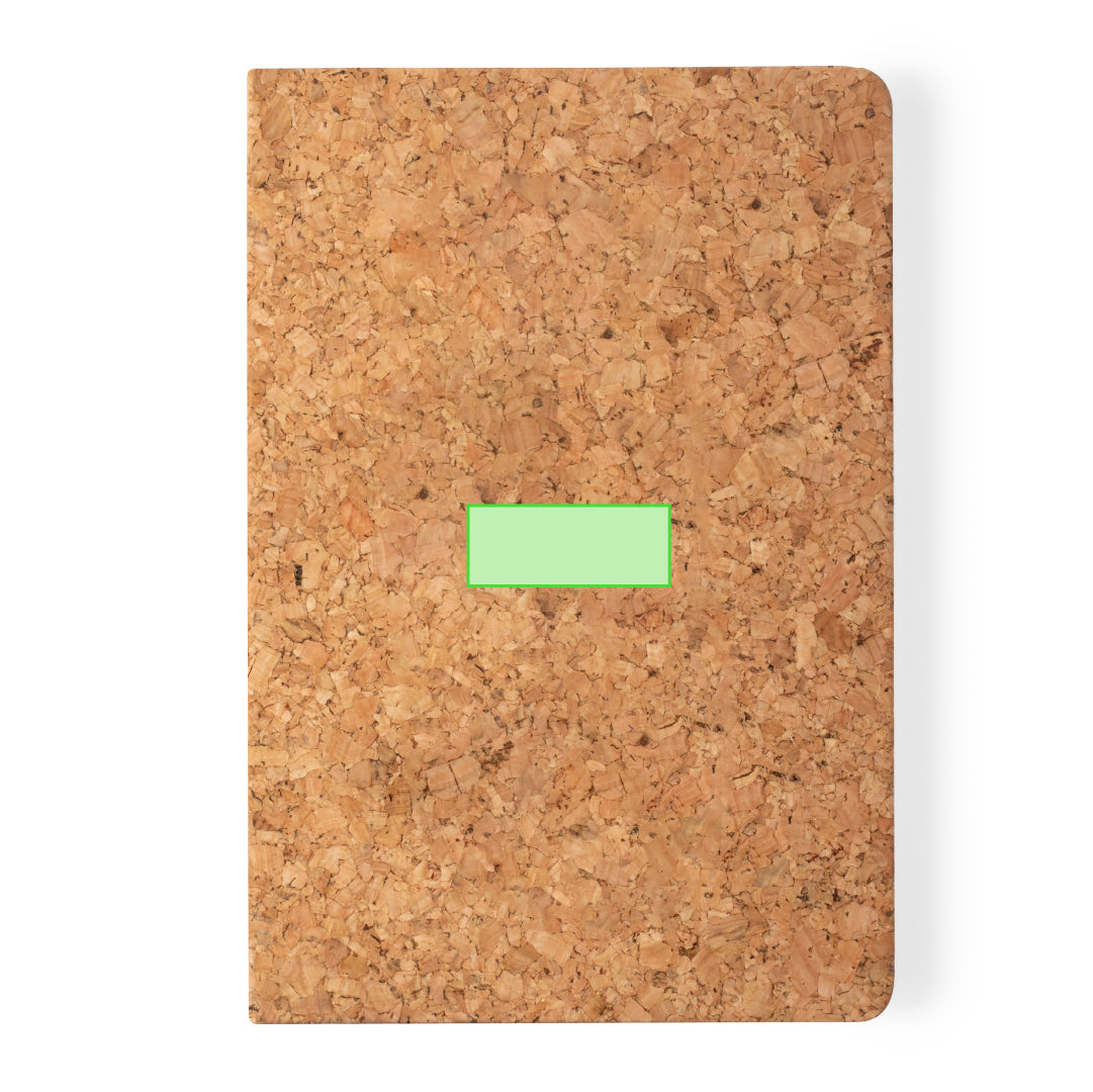 Set of notepad and ball pen in nature line. Notebook with hard covers in natural cork, with 80 plain sheets. Ball pen with push-up mechanism, with natural cork body and accessories in wheat straw, to encourage the use of natural raw materials and reducing contaminant emissions. Presented in a cardboard, die-cut case with eco design. Black ink.
