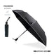 Umbrella by Antonio Miró with 8 panels, in an elegant black color design with white piping. 100cm in diameter, with automatic opening and in in resistant pongee material. With metal ribs in black color, velcro closure and handle with soft touch in PU leather. Includes a closure strap with adjustable fastening and the brand's logo.